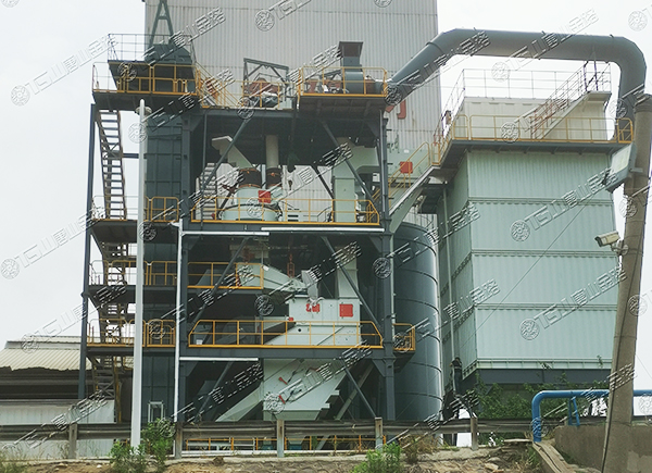 原料經(jīng)過電子秤進(jìn)入到皮帶輸送機(jī)中,由全封閉的提升機(jī)將物料入到五孔碾磨制砂機(jī)內(nèi)進(jìn)行破碎處理,再由空氣篩對(duì)破碎后的物料進(jìn)行篩分、選粉處理,篩分后的較大物料會(huì)返回五孔碾磨制砂機(jī)中進(jìn)行二次破碎,符合要求的砂子則由傳送帶輸送至成品倉中;篩分過程中的粉塵會(huì)經(jīng)粗細(xì)粉分離機(jī)進(jìn)入到布袋收塵器內(nèi),而其中較大的粗顆粒會(huì)在粗細(xì)粉分離機(jī)的作用下,按需求在成品砂中進(jìn)行回?fù)剑?xì)粉塵將通過風(fēng)力進(jìn)入到布袋收塵器,作為副產(chǎn)品進(jìn)行使用。